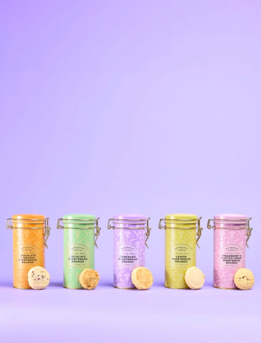 140g Tin of Truly Handmade Shortbread Biscuits with White Chocolate and Hazelnuts