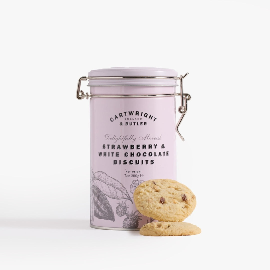 Cartwright & Butler Strawberry and White Chocolate Chunk Biscuits in Tin 200g[4466]