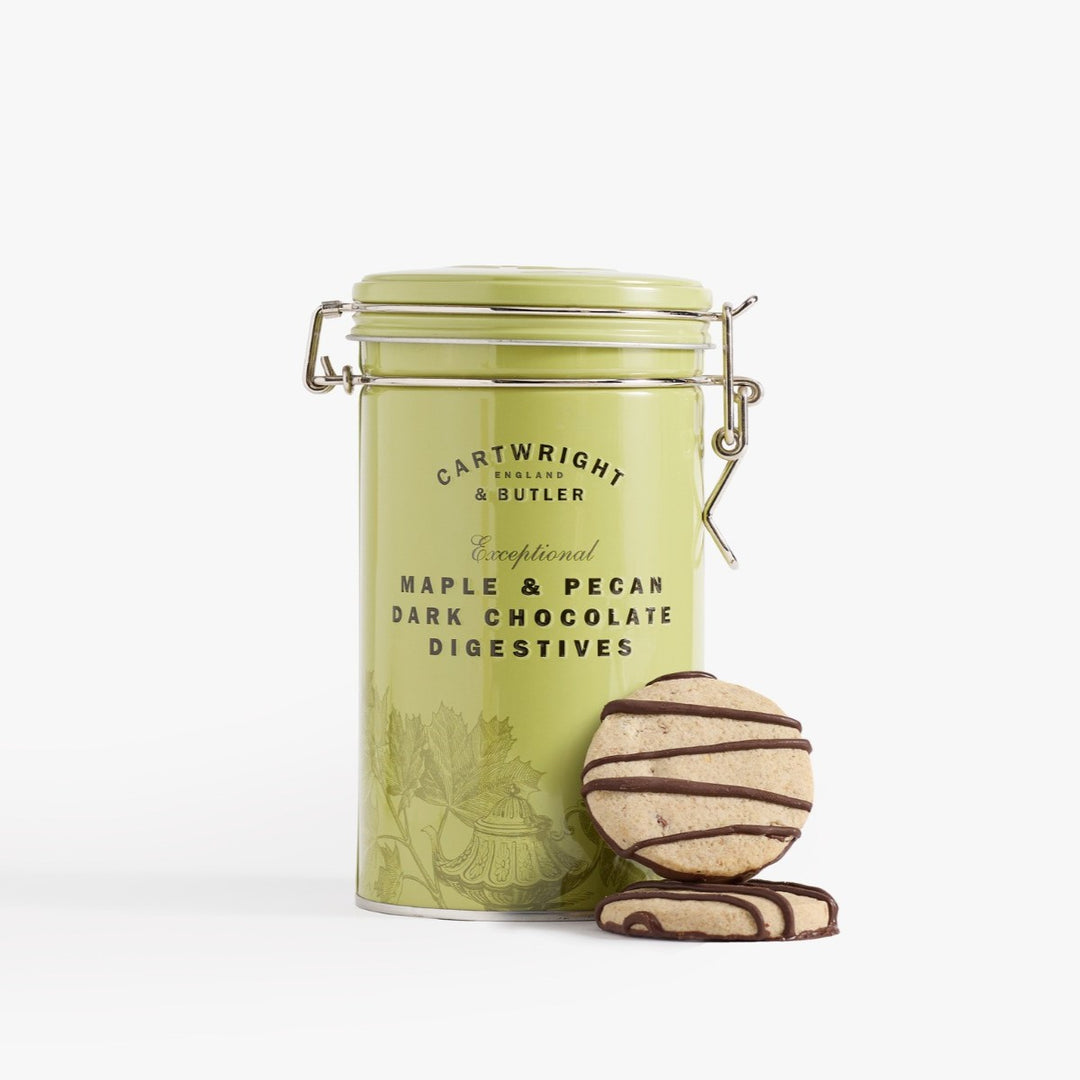 Cartwright & Butler Maple and Pecan Dark Chocolate Digestives in Tin 200g
